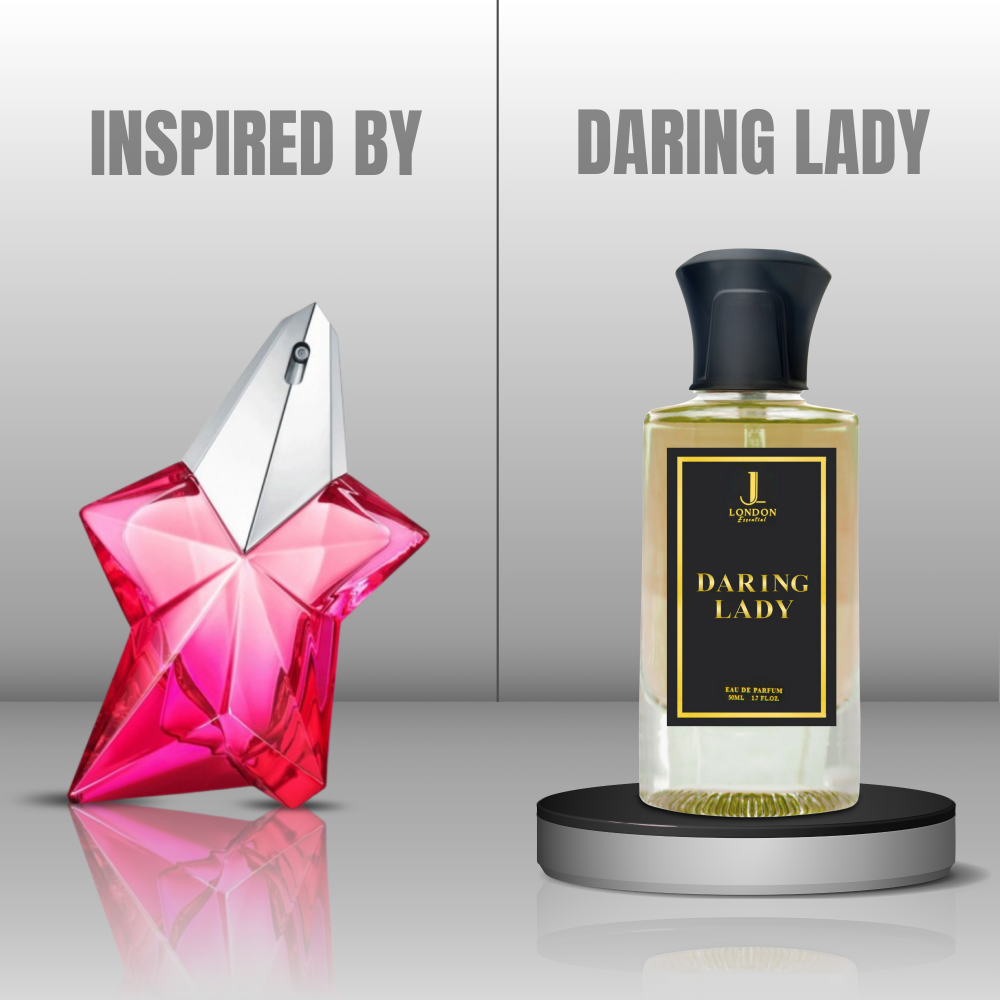 Daring Lady – Inspired by Angel Nova Mugler by Jan London celebrates daring women who shape their destiny. Crafted by olfactory experts, this Eau de Parfum combines fruity delight, an exclusive Mugler rose, and vibrant woody essence.